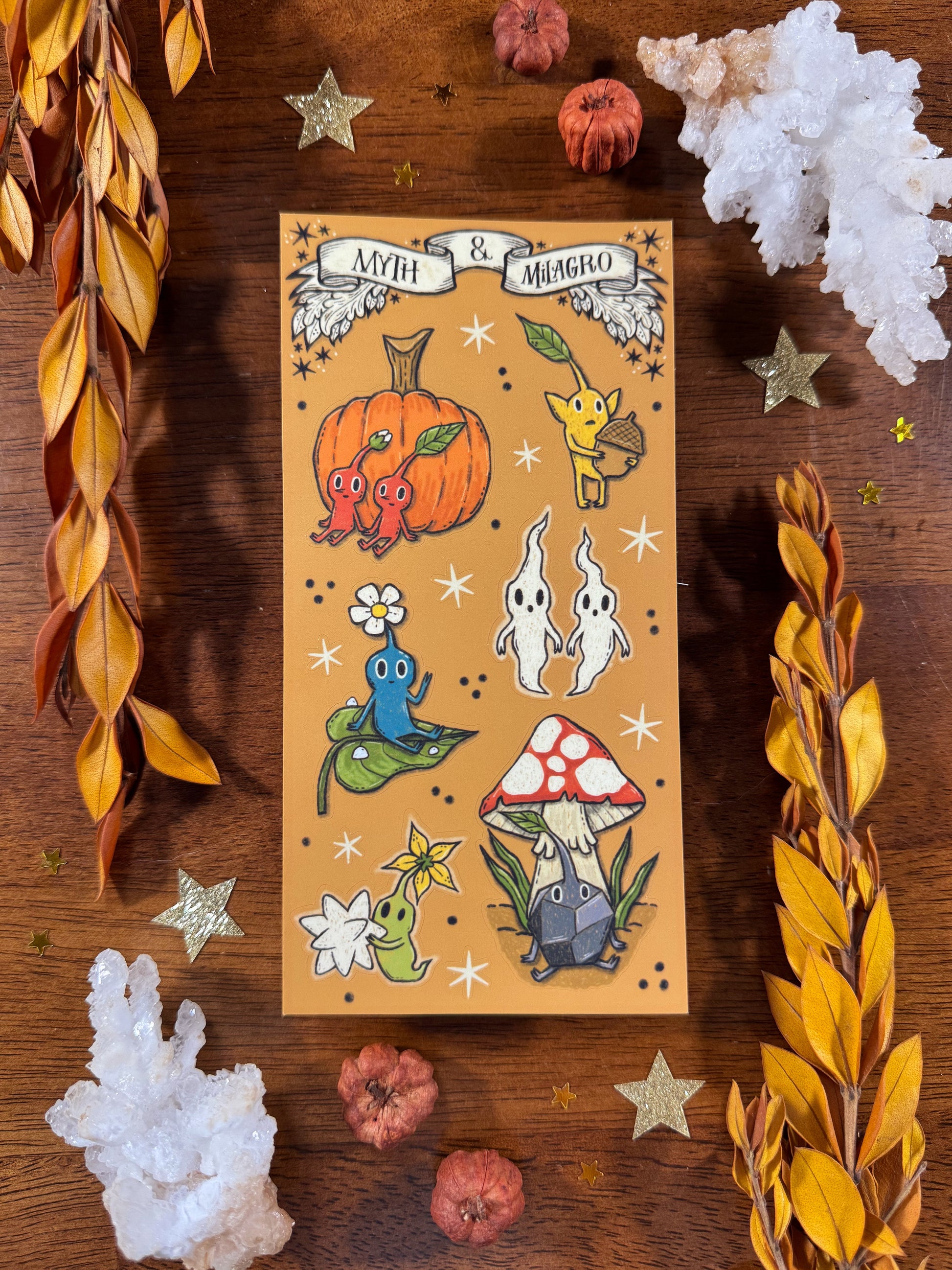 This vinyl sticker sheet features some of my favorite characters from the video game, Pikmin 4. They’re all hand drawn by myself and has an autumnal theme. My favorite is the yellow Pikmin in case you were wondering 😉