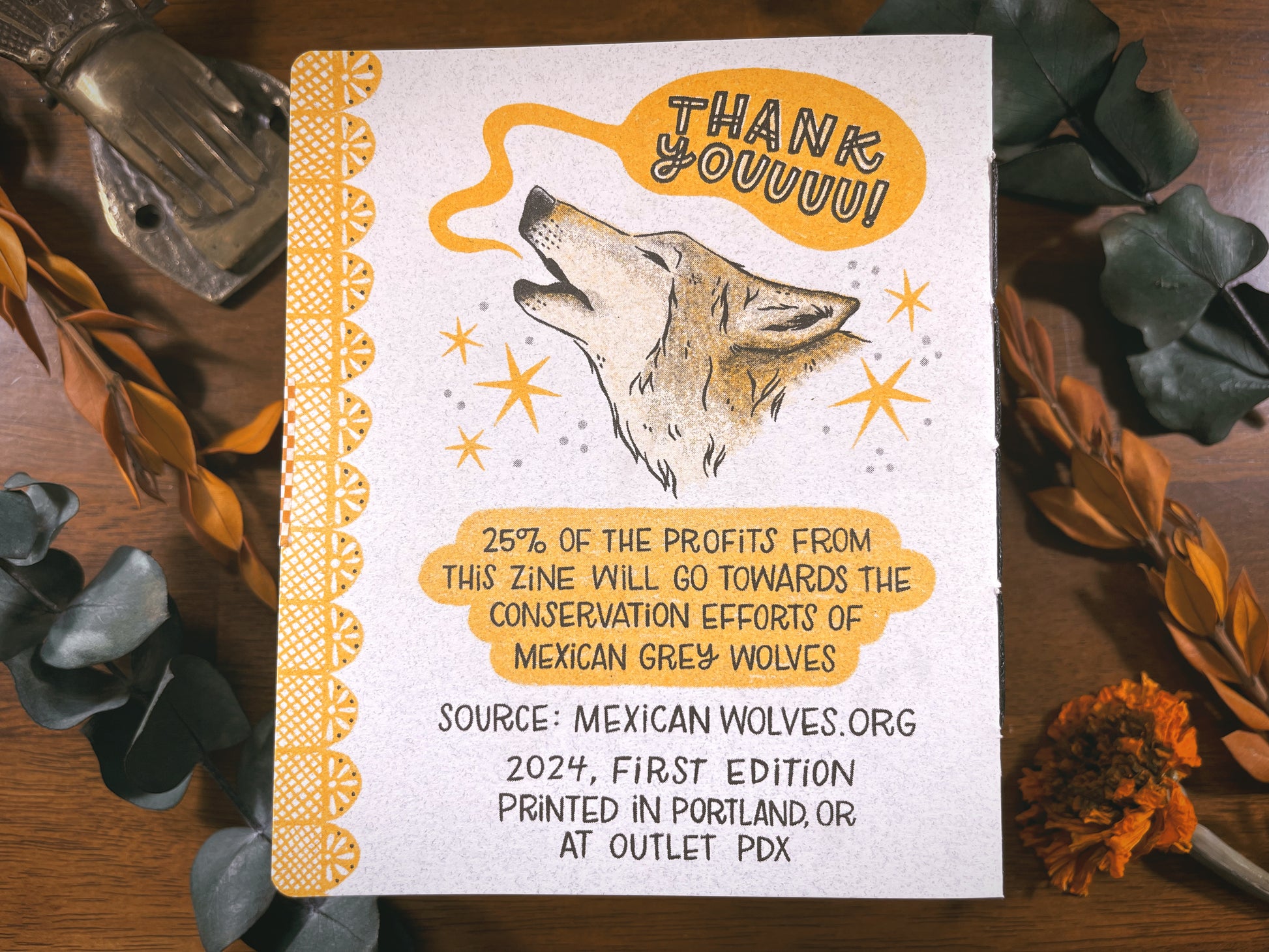 This zine is fun and informational all about the critically endagered, Mexican Grey Wolf. Or, Lobo! 25% of the profits of this zine will go towards the conservation efforts of Mexican Grey Wolves ^-^